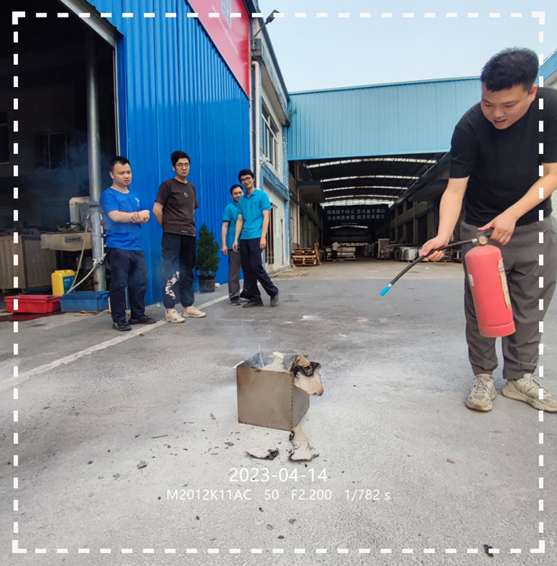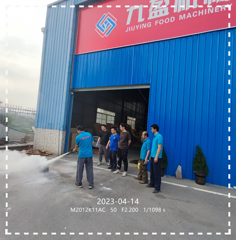 2023年4月14日;九盈机械集团公司与腾博会包装机械公司,在工厂园区进行了消防灭火实操演练及消防安全知识培训;各班组消防安全员现场模拟火源被发现;及时应对;及时灭火,同时培训了大风环境下如何灭火及疏散撤离;等实操项目;旨在提高消防安全意识;增强消防灭火实操技能;保障厂区安全生产稳定;