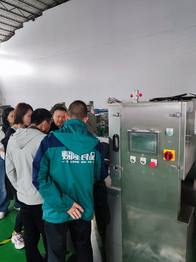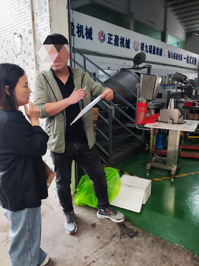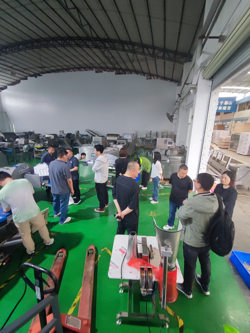 2024年4月8日、广州市九盈机械集团公司;腾博会食品机械综合展厅; 今天上午三波客户到访,有现场考察交流的,试机打样的,定制设备验收的都聚到一起了,果蔬切丁机 冻肉切丁机 鸡胸肉切片机 洗菜机 砍排机悉数亮相;这生意杠杠滴!客户满意才是王道。