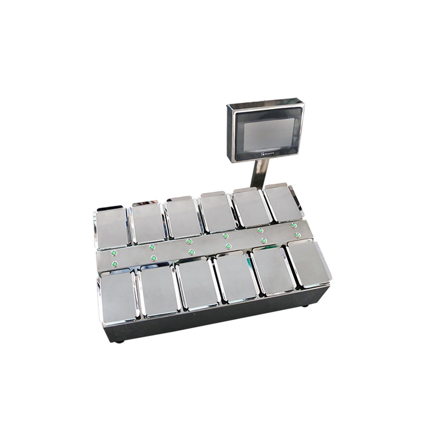 · 各称台放入物料后由称重系统称出重量后组合配重到合适重量后点亮对应指示灯。