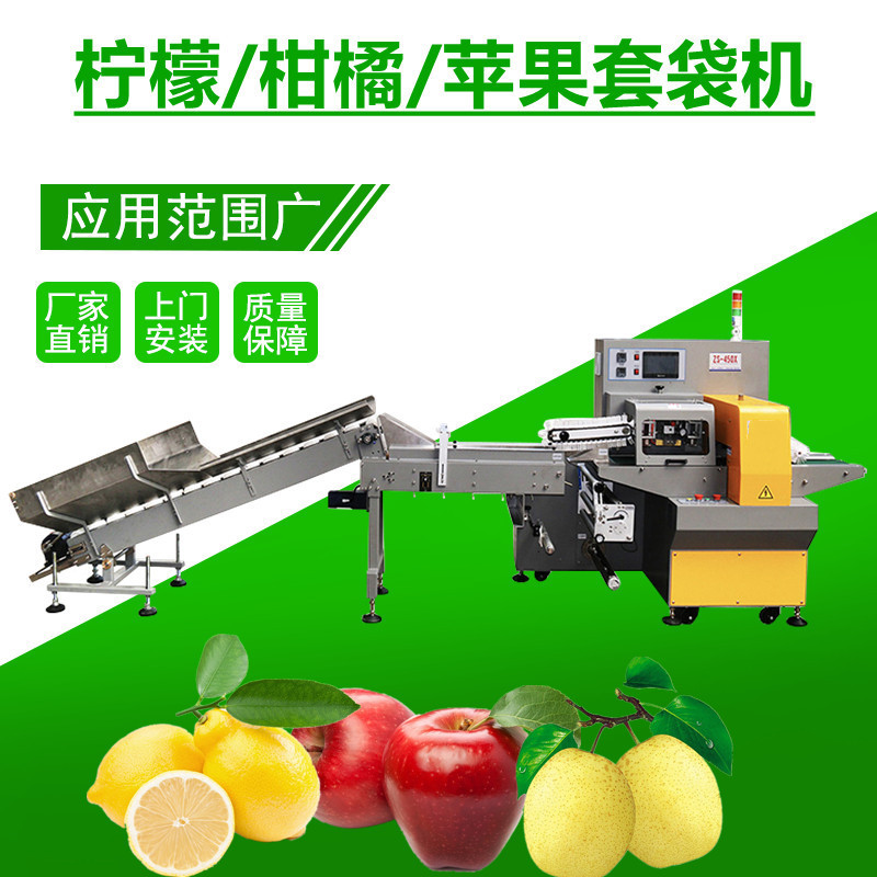 新款水果保鲜膜水果包装机、橙子柠檬保鲜膜套袋机、单果套袋!具有防空包功能,没有产品包装膜和切刀不动作,节约包装膜。全自动包装无需人工摆料,只需将水果倒入包装机料斗内,机器自动将水果提升送入包装机完成包装!主要适用于:各类圆形水果全自动包装,如柠檬、柑桔、柑橘、奇异果、沙糖桔、番石榴、香梨、火龙果、芦柑、橙子、橘子等。